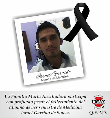 O corpo do estudante bacabalense Israel Garrido de Sousa, de 27 anos, aluno do 3º período do curso de medicina da Universidade Maria Auxiliadora, em Assunção, capital do Paraguai, e que morreu no inicio da madrugada de quinta-feira (4) deverá chegar a Bacabal por volta das 2 horas da madrugada deste domingo (7).