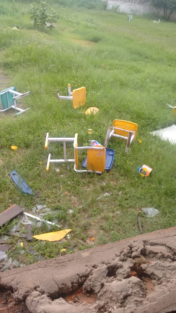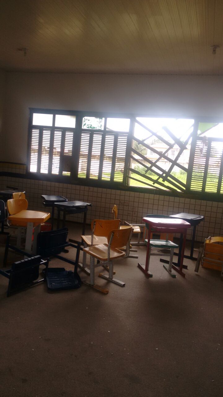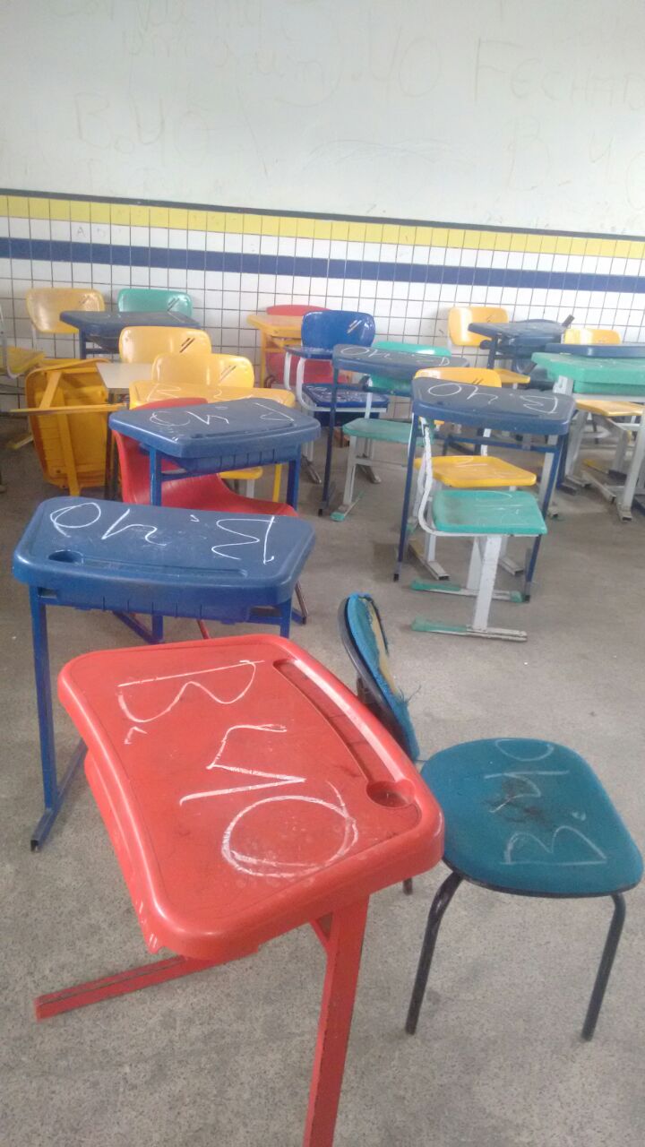 Pelas fotos é possível observar o rastro de destruição deixado pelos vândalos, são carteiras e janelas quebradas, pichações em vários locais, inclusive com a sigla de uma facção criminosa, com atuação na capital São Luís.