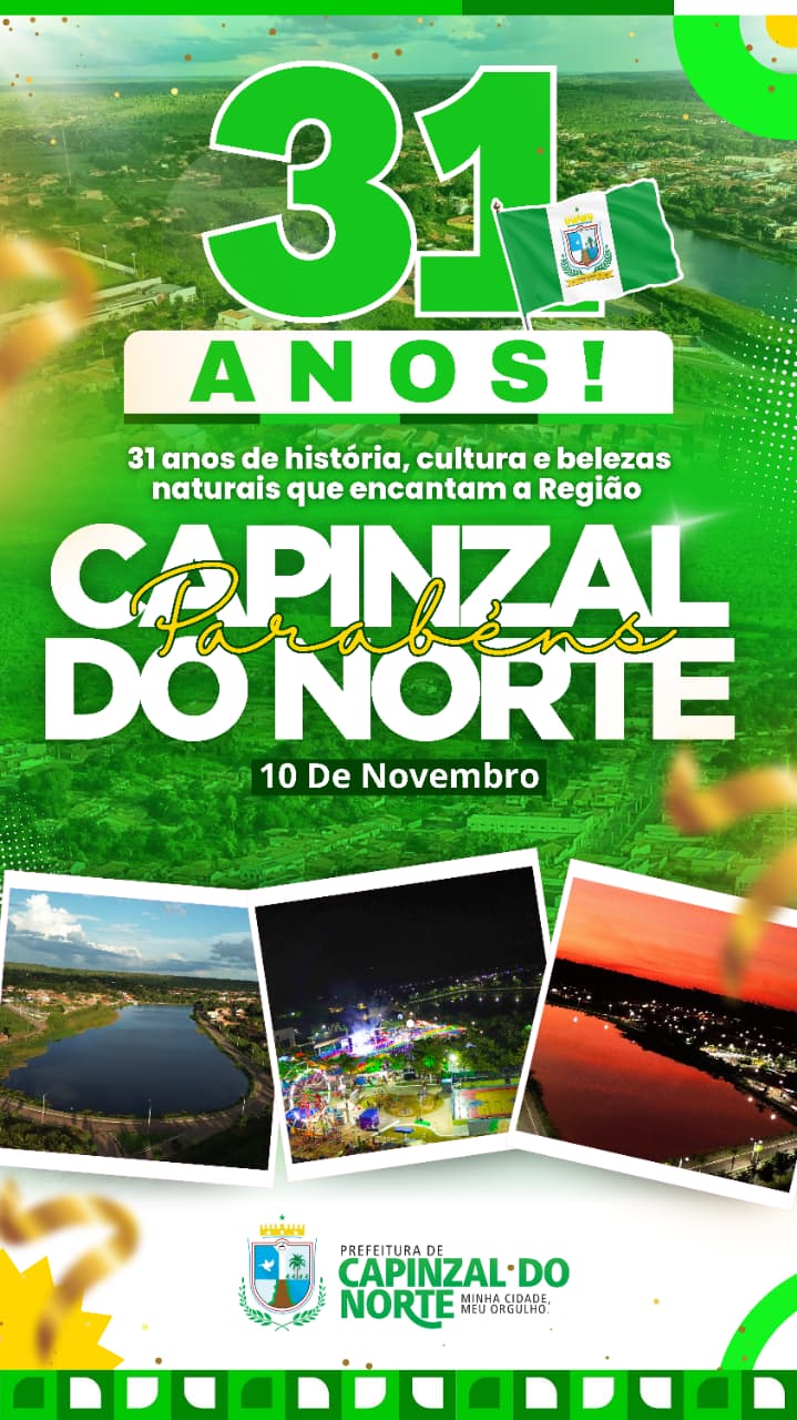 Capinzal do Norte celebra, neste 10 de novembro de 2025, seus 31 anos de emancipação política. A data marca não apenas o aniversário do município, mas também o fortalecimento de uma história construída com trabalho, coragem e determinação de um povo que acredita no futuro da sua terra.