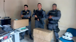 Com o intuito de aprofundar a investigação sobre a situação do veículo, os policiais acompanharam os dois desconhecidos até o local onde estava o carro, que logo passaram a fazer a averiguação, sendo encontrado de imediato, foram localizadas 04 caixas grandes que totalizam 105 kg de maconha prensada.