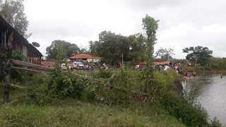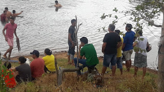 Populares procuram pelo corpo do jovem Samuel, que se afogou na manhã desta quinta-feira (26), quando estava em uma canoa no açude do Manim, na saída de Lago da Pedra para Bacabal – MA.
