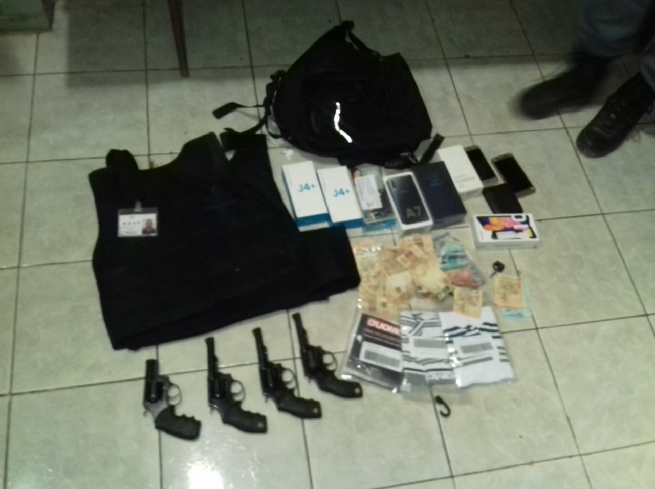 A polícia recuperou o dinheiro, armas, celulares e outros objetos que estavam em poder da dupla.