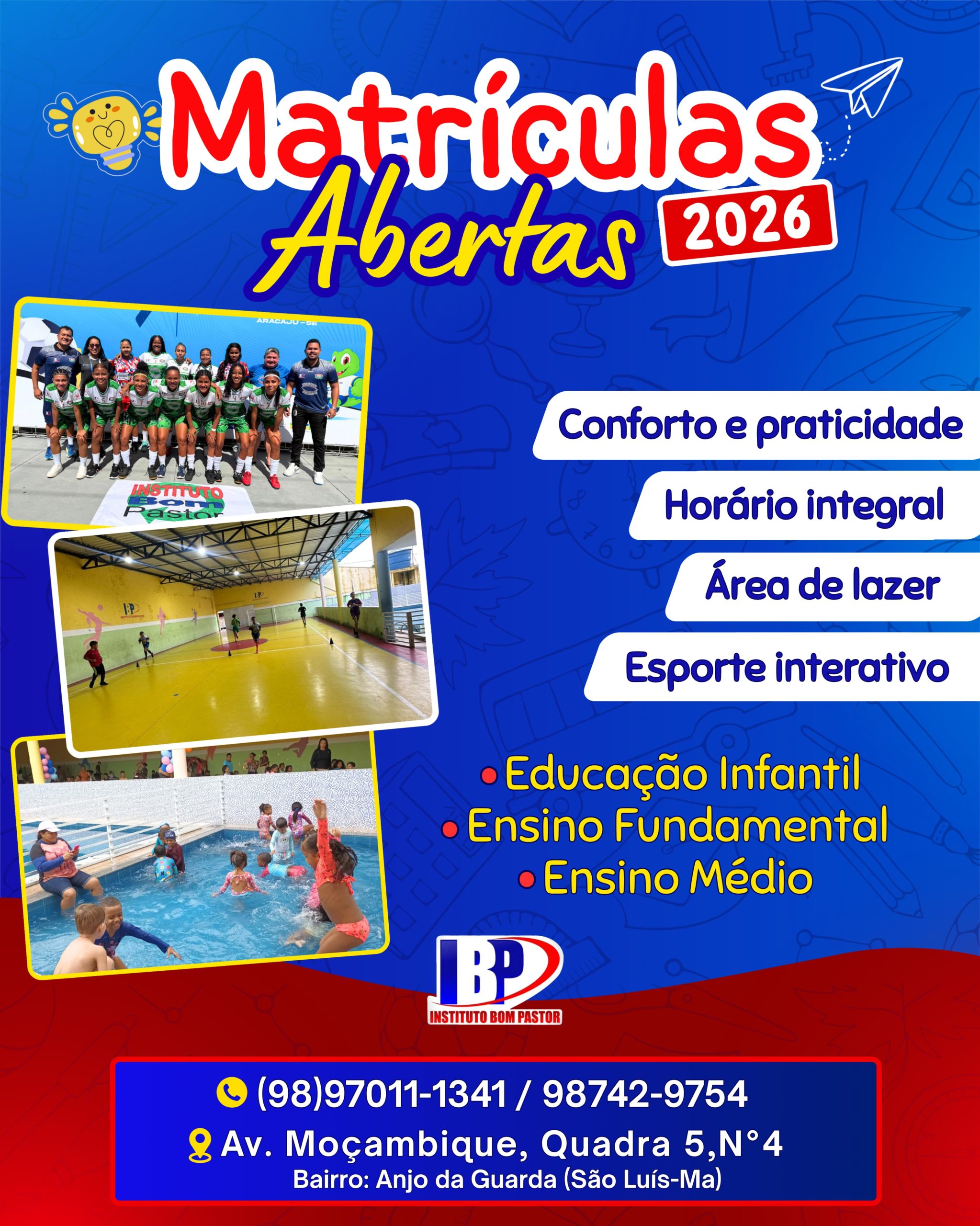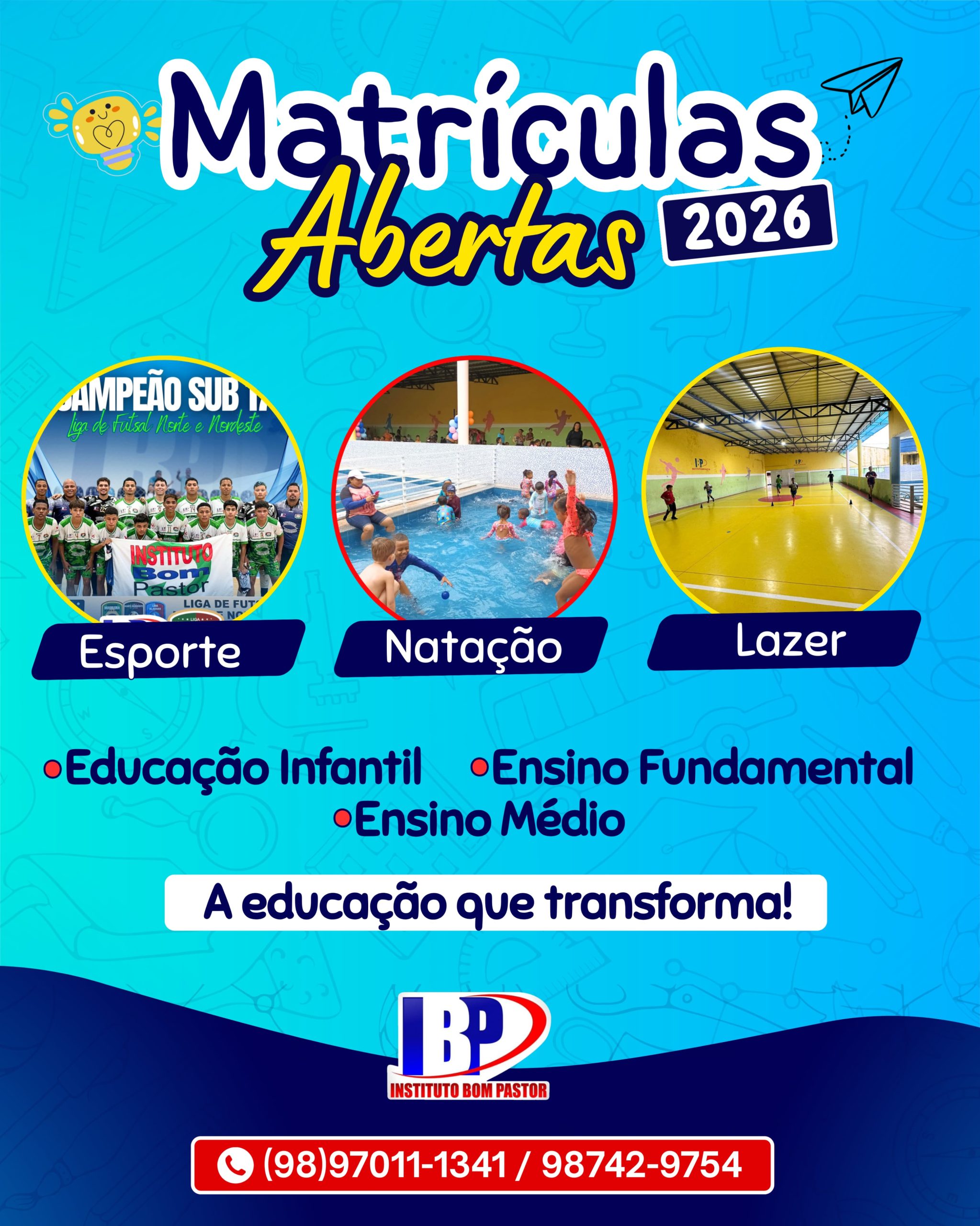 📚 O Instituto Bom Pastos informa que já estão abertas as matrículas para o próximo ano letivo. Pais e responsáveis podem garantir a vaga dos estudantes diretamente na escola.