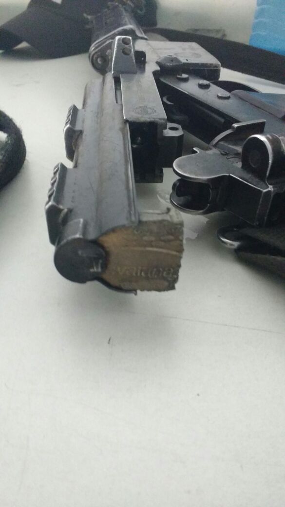 Segundo a denúncia encaminhada os policiais contam com 6 fuzis, ou pelo menos deveriam contar, dos 6 fuzis, 4 estariam com problema e os outros 2 só podem ser utilizados com o auxílio de pedaços de borracha de chinelo. São fuzis calibre 556.