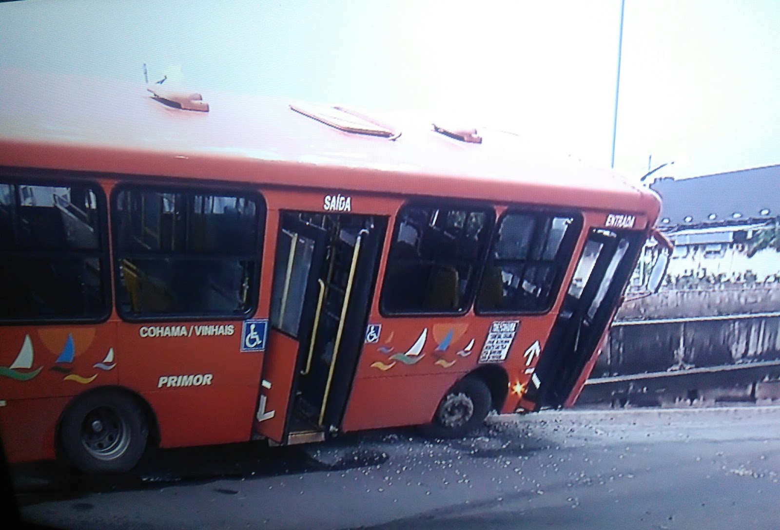 Um ônibus da empresa Primor, colidiu no muro, na entrada do Elevado da Cohama, no sentido Cohama-Vinhais.