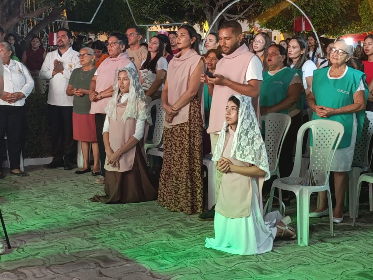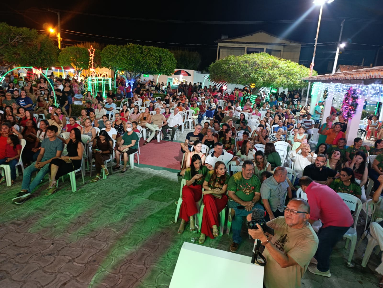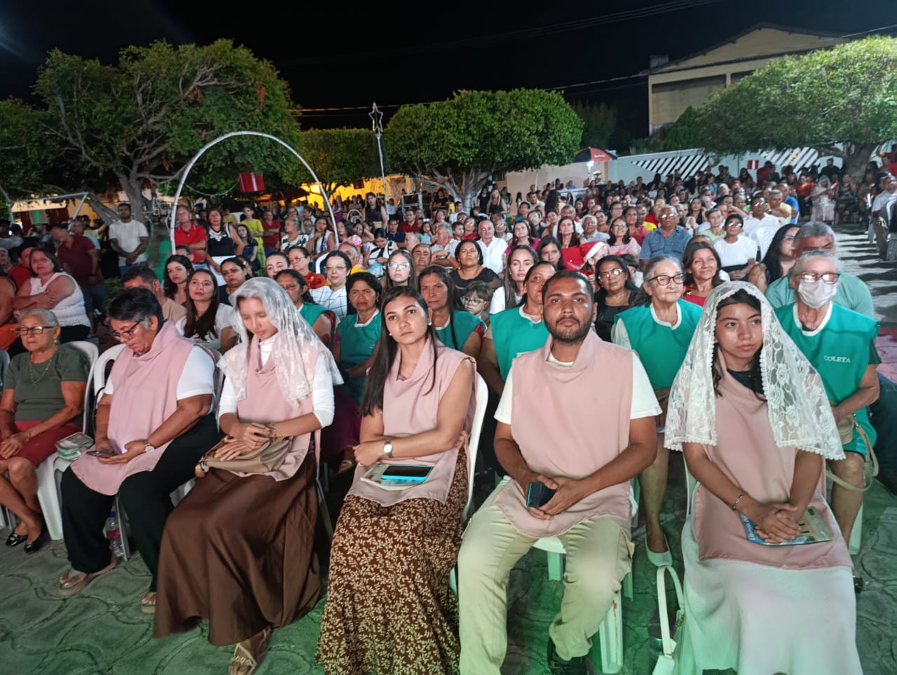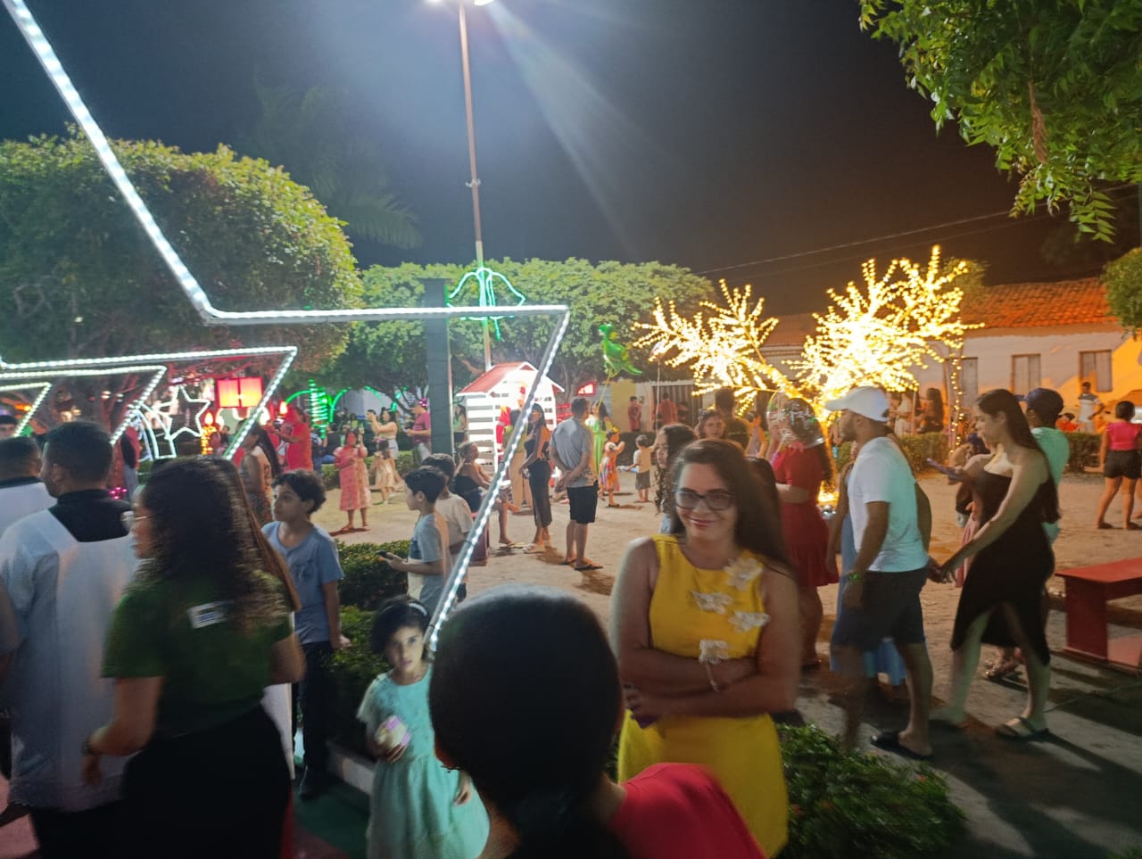 A programação teve início com Missa Campal, seguida por apresentações musicais infantis, que emocionaram o público presente, e culminou com o aguardado acendimento das luzes, momento que arrancou aplausos e encantou famílias inteiras. A praça iluminada se tornou o grande símbolo da noite, reforçando o clima de união e confraternização.