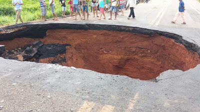 A imensa cratera se abriu no Povoado Ferro Velho, altura do município de Santa Luzia do Tide, o trecho teria sido recuperado há pouco tempo pelo Dnit.