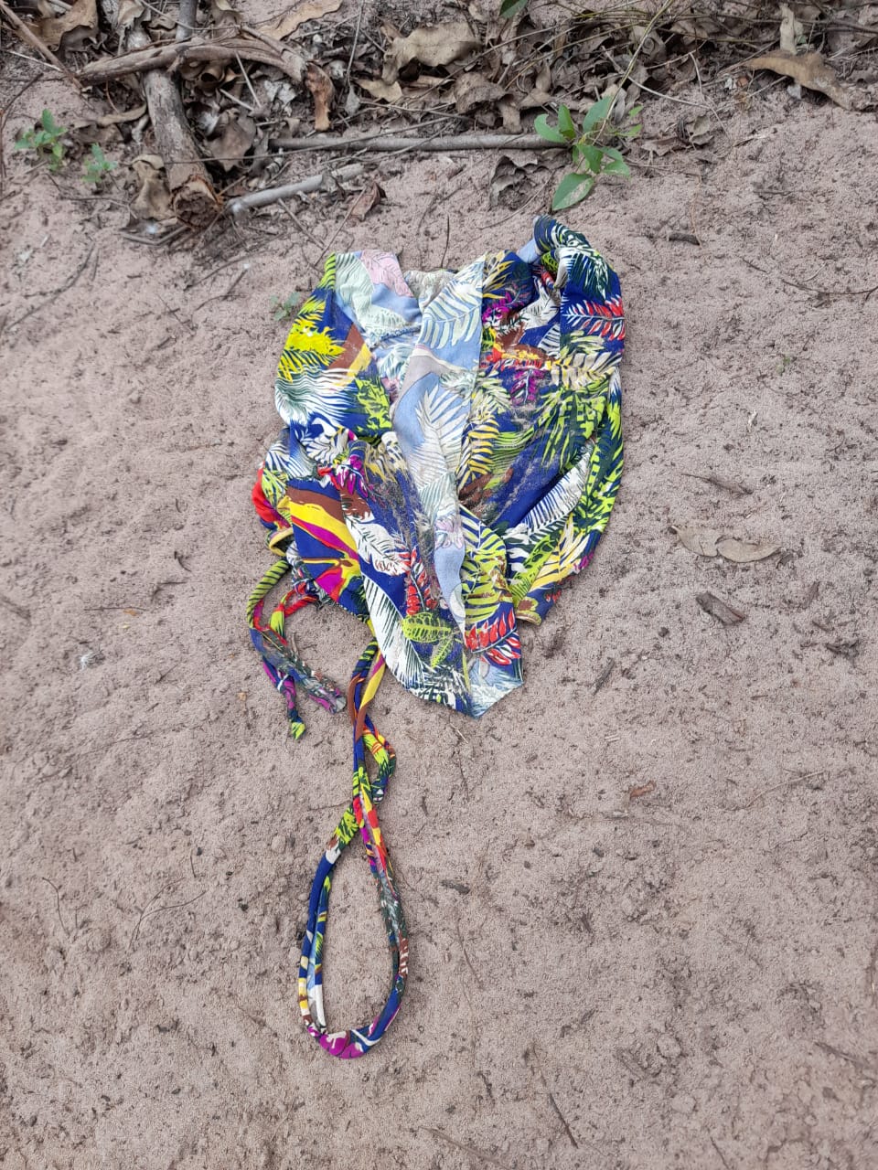 Nas proximidades do corpo foi encontrada uma blusa sem manga com estampas.